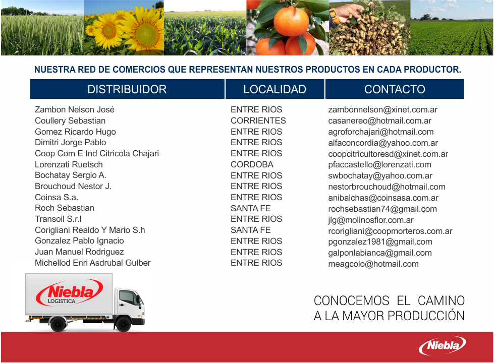 Nuestra red de distribuidores estratégicamente seleccionados para que nuestros productos Niebla Agroinsumos esten