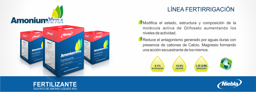 Amonium Xtra como activador de Glifosato se recomienda entre el 2 % y el 2.5 % Del total del volumen